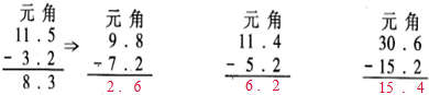 11.5元-3.2元=______元,11.5元是11元5角,3.2元是3元2角.元减元,角减角.11.5元-3.2元=8.3元.完成下列计算.