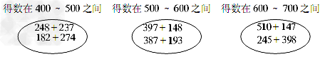 下面哪些题的结果小于700?在□里打“√”。598+278□439+245□95+594□