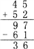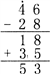 (1)54+27=81 (2)38+32=70 (3)83-64=19 (4)46-28+35=53 (5)45+52-61=36 (6)96-21-56=19