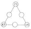 在○里填上合适的数,使每条线上三个数的和是100。