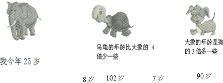 请计算乌龟和大象的年龄是多少岁?