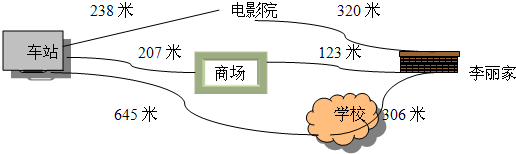 (2)张老师从车站下车,经过电影院和李丽家,到学校需要走多i米?