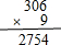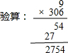 列竖式计算(打※的要验算).※306×9=466×7=987÷8=※605÷3=