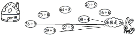 56÷9=6…2, 73÷8=9…1, 64÷8=8, 40÷5=8, 29÷3=9…2, 27÷5=5…2, 38÷4=9…2, 36÷6=6,
