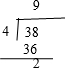 38÷4=了…2;