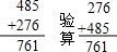 (1)485+276=761 (2)617-368=249 (3)205×5=1025 (4)348×5=1740 (5)250×8=2000 (6)49÷8=6…1.