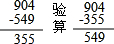 904-549=355