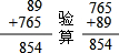 89+765=854
