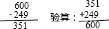 (2)600-249=351;