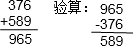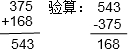 | 竖式计算,要求验算的请写出验算. (1)375+168=验算: (2)709-425=验算: (3)376+589=验算: (4)603-497= (5)806-318= (6)396+454= |
