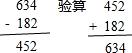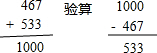 (1)286+54=340; (2)42÷8=5…2; (3)467+533=1000; (4)880-407=473; (5)52÷6=8…4; (6)634-182=452.