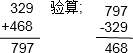 计算并验算.329+468=800-345=704-328=472+348=