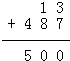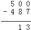 ②500-487=13.