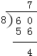 竖式计算.438+多7得=74÷9=得ss-多87=6s÷8=得9÷6=