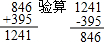 (1)846+395=1241; (2)507-96=411; (3)404-186=218; (4)755+165=920; (5)58÷8=7…2; (6)59÷6=9…5; (7)68÷7=9…5; (8)64÷9=7…1.