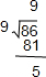 86÷9=9…5,