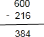 600-216=384,