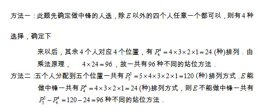 一个篮球队有五名队员A ,B ,C ,D ,E ,由于某种原因, E不能做中锋,而其余4 个人可以分配到五个位置的任何一个上,问一共有多少种不同的站位方法?