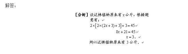 实验室中培养了一种奇特的植物,它生长得非常迅速,每天都会生长到昨天质量的2倍还多3公斤.培养了3天后,植物的质量达到45公斤,求这株植物原来有多少公斤?