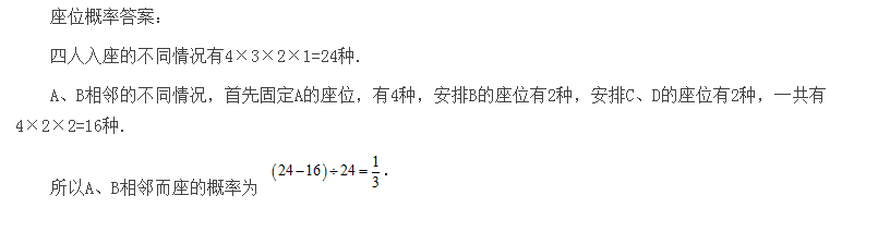 一张圆桌旁有四个座位,A、B、C、D四人随机坐到四个座位上,求 与 不相邻而坐的概率