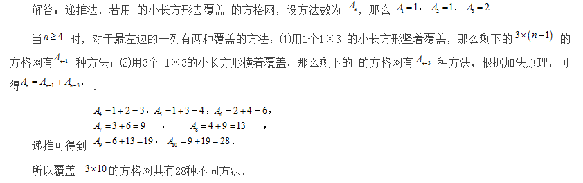 用10个1×3的小长方形去覆盖3×10的方格网,一共有多少种不同的覆盖方法。