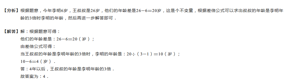 今年李明6岁,王叔叔26岁,问几年后王叔叔的年龄是李明的3倍?