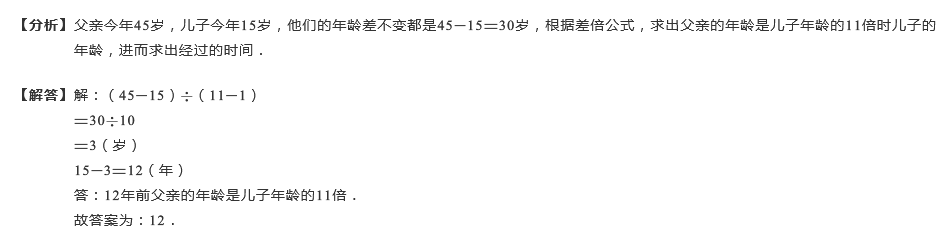父亲今年45岁,儿子15岁,多少年前父亲的年龄是儿子的11倍?