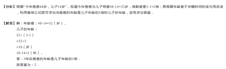 爸爸今年46岁,儿子14岁,多少年后爸爸的年龄是儿子的3倍?