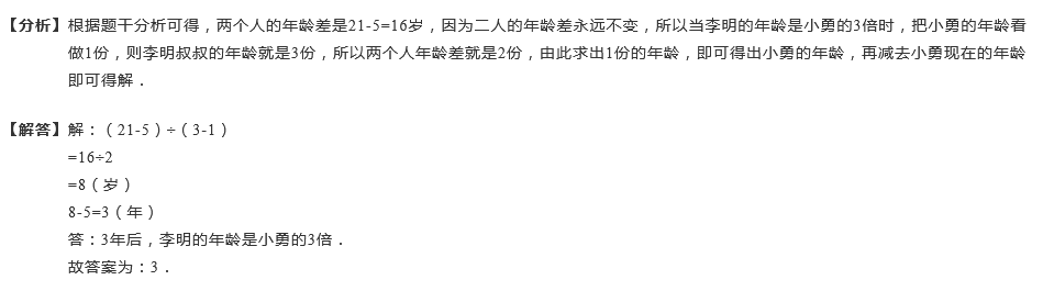 今年李明21,小勇5岁,多少年后,李明年龄是小勇的3倍?