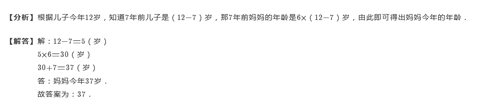 7年前,妈妈的年龄是儿子的6倍,儿子今年12岁,妈妈今年多少岁?