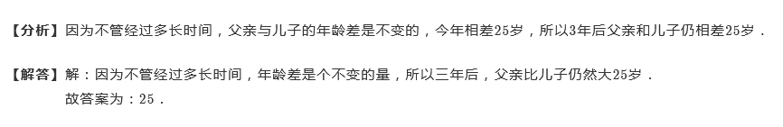 今年父亲比儿子大25岁,三年后,父亲比儿子大多少岁?