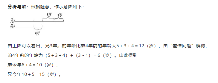 兄弟二人的年龄相差5岁,兄3年后的年龄为弟4年前的3倍。问:兄、弟二人今年各多少岁?