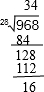 968÷28=34…16;