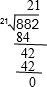 882÷42=21;