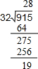 915÷32=