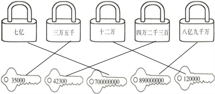 七亿写作:700000000, 三万五千写作:35000, 十二万写作:120000, 四万二千三百写作:42300, 八亿九千万写作:890000000, 连线如下:
