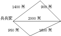 见图,兵兵家到学校有3条路,算一算,比一比,哪条路最近?